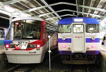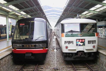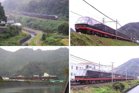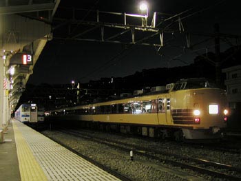 そして黒船号。リゾート第一編成をキャンペーンで黒塗装にした。 下の写真は発車前に上り「リゾート踊り子号」と並んだ所。 ・