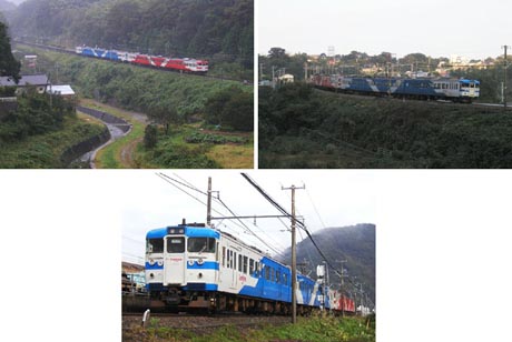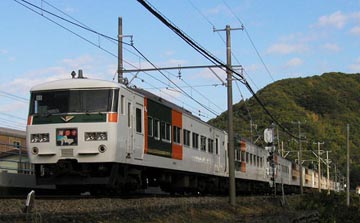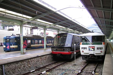 | 2004/10/2 下田での釣りを前にちょこっと撮影。 この頃はデジカメ以外持っていかない撮影行が多かった。 トランバガテル/黒船号/185系200の並び。 ・
