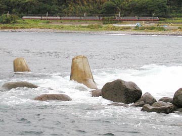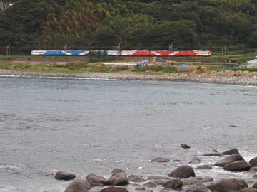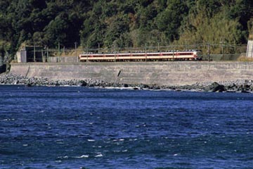 | 2004/9/27〜28 恒例となった秋のお月見電車「観月号」乗車のため伊豆入り。 前日入りして撮影と釣りをしばし楽しむ。 まずは近年定番となった今井浜海岸−伊豆稲取にて。 200系の赤+青の併結運転。 ・