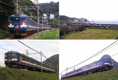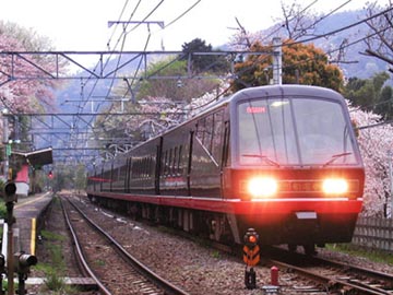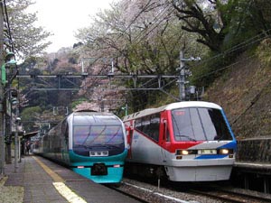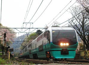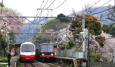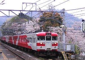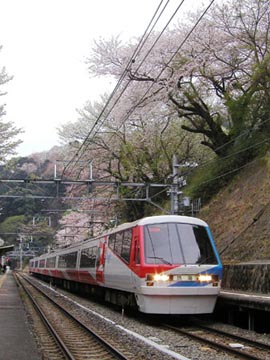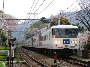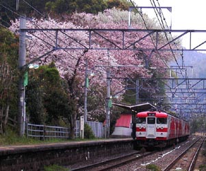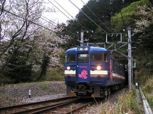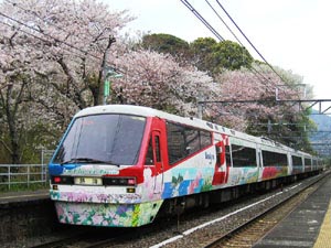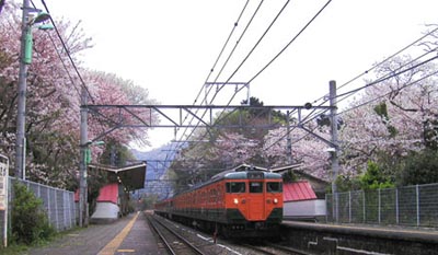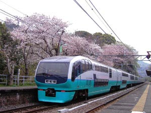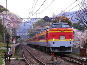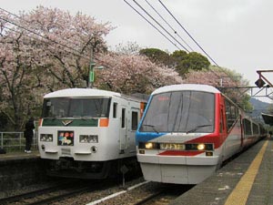 | 2004/4/4 伊豆多賀駅にて満開の桜とリゾート21”黒船号”の組み合わせを狙った。 天候は終日曇りと生憎であったが桜の見事さに大満足。 まずは200系トランバガデル ・