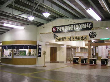黒船号に合わせ装飾された下田駅改札口。 ・