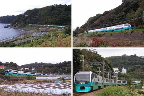 おまけ。富戸駅で200系赤とリゾート第2編成の並び。 そして全般検査明けできれいな第3編成。 ・