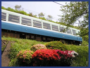 ★ 蓮台寺 クモハ103 (デジカメ) 伊豆は花が多く、ハワイアンブルーとの組み合わせ もばっちり絵になる。 |