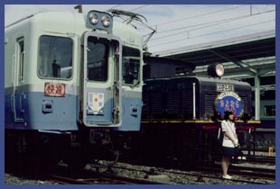 撮影会 クモハ104、ED25 機関車の前にいる女性は伊豆急行の運転士さんです。 できれば人物中心に撮りたかった。 |