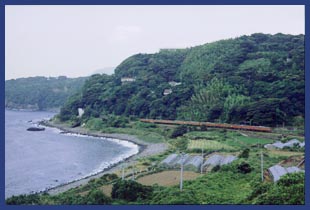 | ★ 5630M 伊豆稲取〜今井浜海岸 200系 (50mm) 100系の後継、200系も伊豆の風景によく似合う。 この場所では8連で撮りたかった。 |