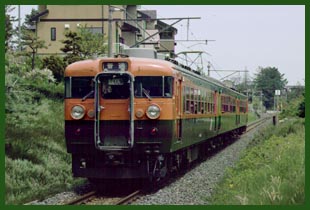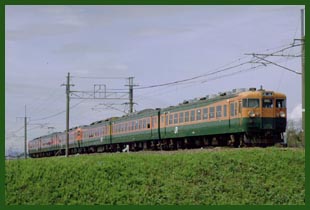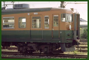 | 【新津 クモハ165-119】 新潟のクモハ165ほとんどの車がモータ用ベンチレータ を撤去しちょっと間抜けな姿です。 |