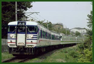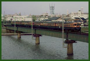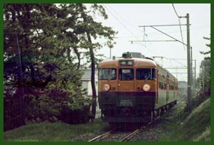 【越後線 内野〜新潟大学前 ・クモハ115〜6連】 新潟色も何度となく変更され、なんとなく落ち着きま せん。この編成も混色ですが、6連だったため写真 では一番後ろが切れてしまいました。 |