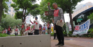 報告がだいぶ遡りますが、先号の「パルス」が5月19日の社前行動の日の発刊でしたので、この日の行動から報告します。朝7時30分からの行動、例によって小早川常務は朝早く7時50分に出社、「争議を解決しなさい」と抗議の声をかけました。