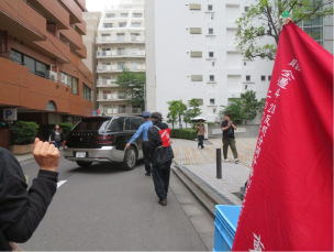 5・29日本雑誌協会総会、宮原理事長へ抗議の情宣行動 東京ドームホテル前