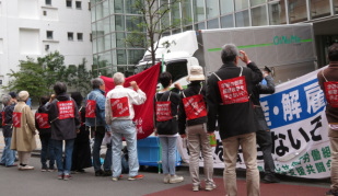 10月21日は、昼休みの12時30分から14時までの社前行動を行いました。来客・取引先、学研関連の人々にビラを配布、効果的な訴えをすることができました。